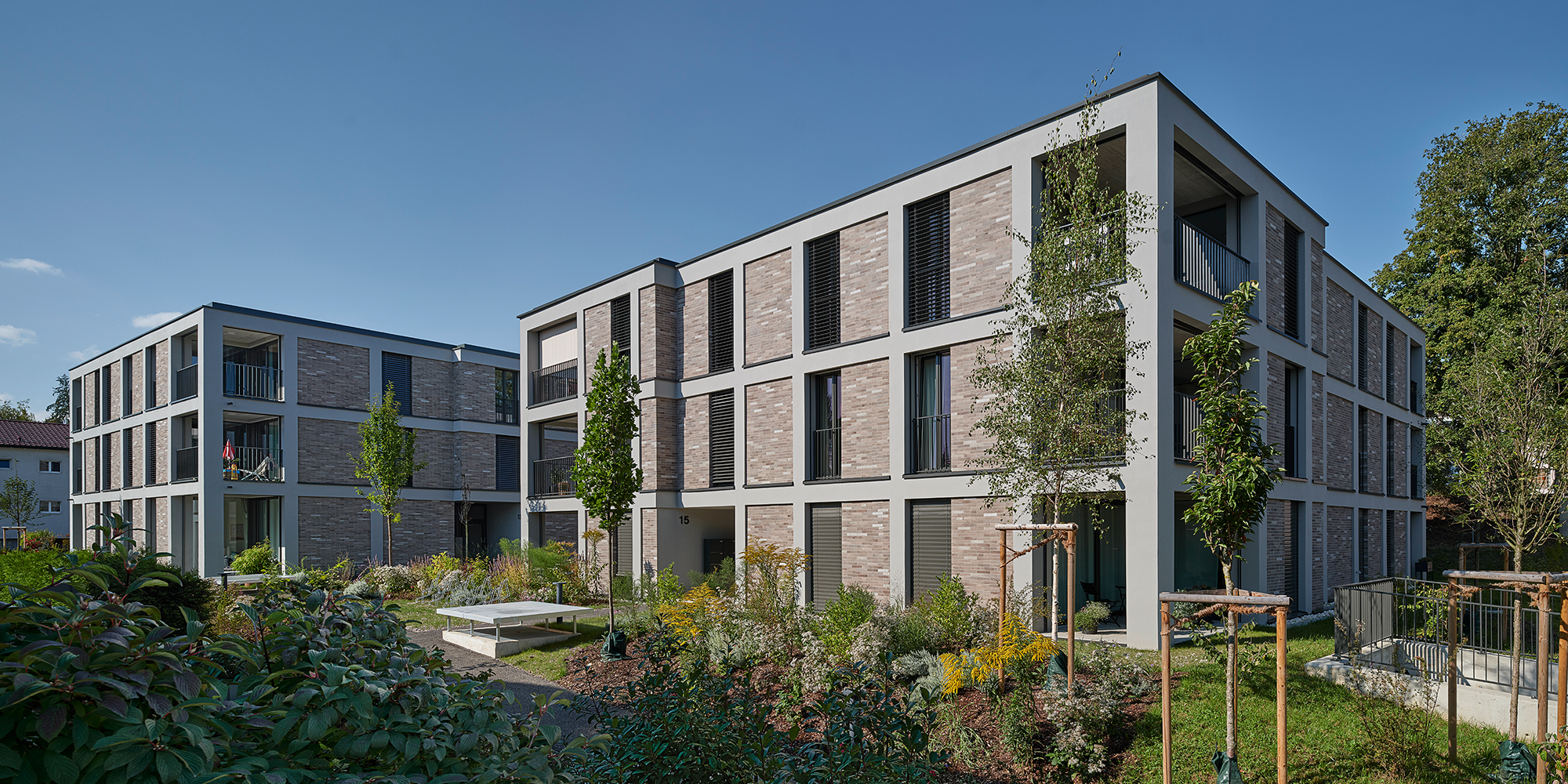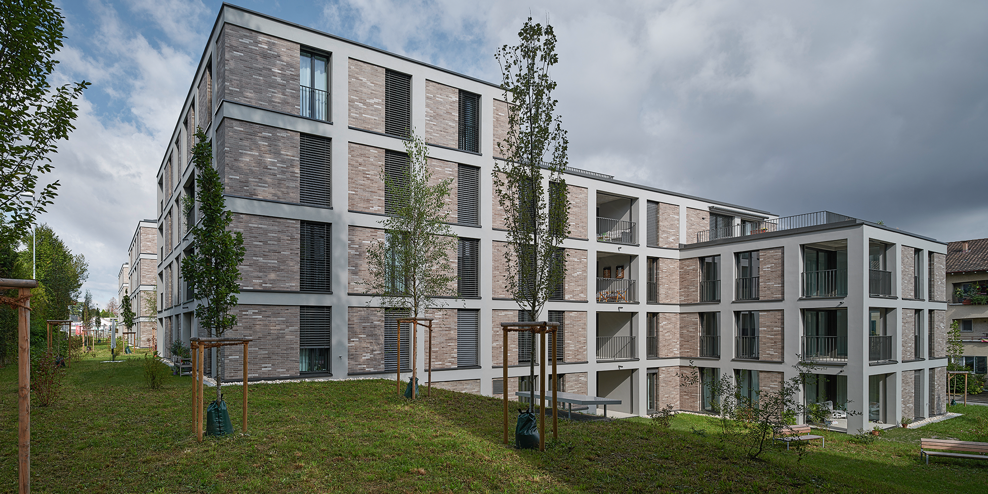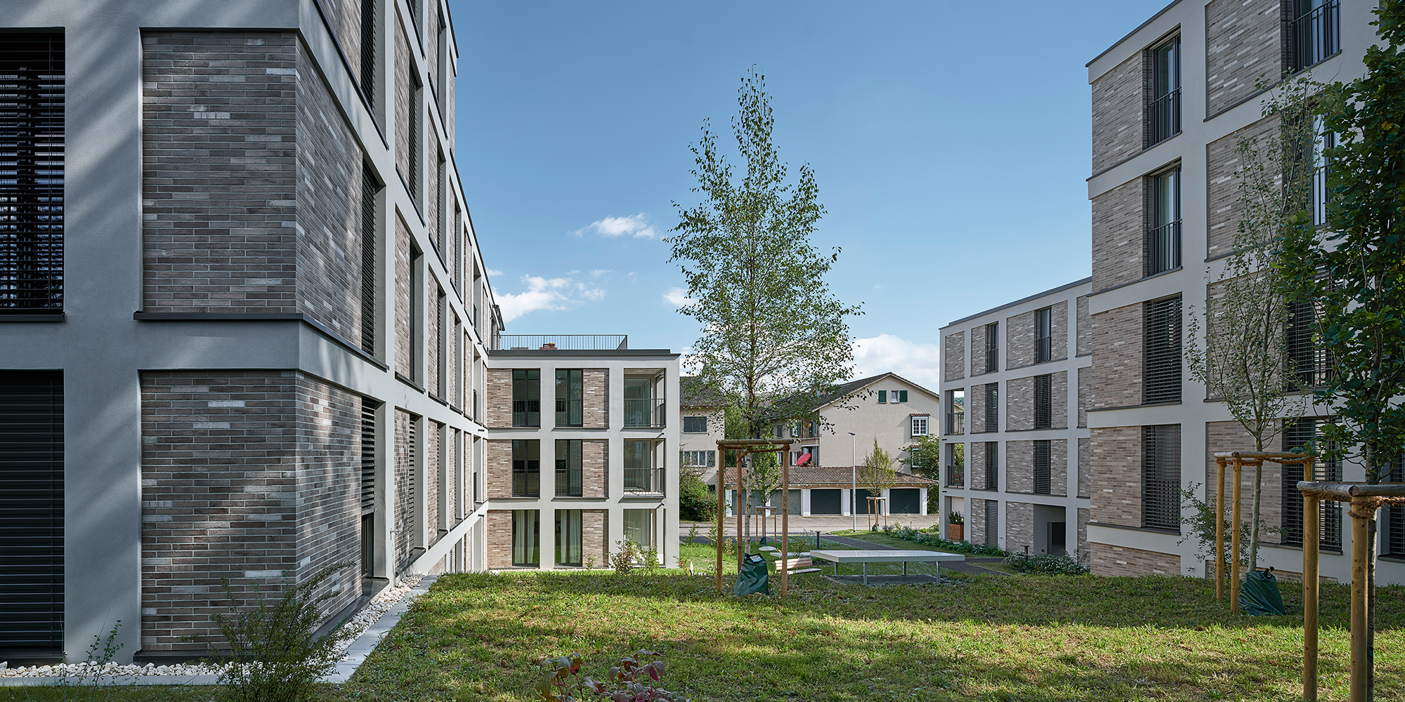 Die Zwischenräume werden als Höfe mit einer üppigen von verschiedenen Vegetationsstufen geprägten Gartenlandschaft ausformuliert und bilden eine attraktive Adressierung. Diese vegetative Dichte reagiert auf die bauliche Verdichtung und schafft ein angenehmes Mikroklima für die 95 neuen Wohnungen. Geplant ist ein vielfältiges Wohnungsangebot mit 2 1/2 – 5 1/2 Zimmer-Wohnungen, die den Mietern zeitgemässe Wohnräume mit einer hohen Variabilität in der Nutzung und Möblierung bieten. Die Tektonik der Fassaden aus Gesimsen, Lisenen und zurückversetzten Wand- und Fensterfüllungen verleihen den Baukörpern eine Plastizität sowie Eleganzund stärken die volumetrische Gliederung.