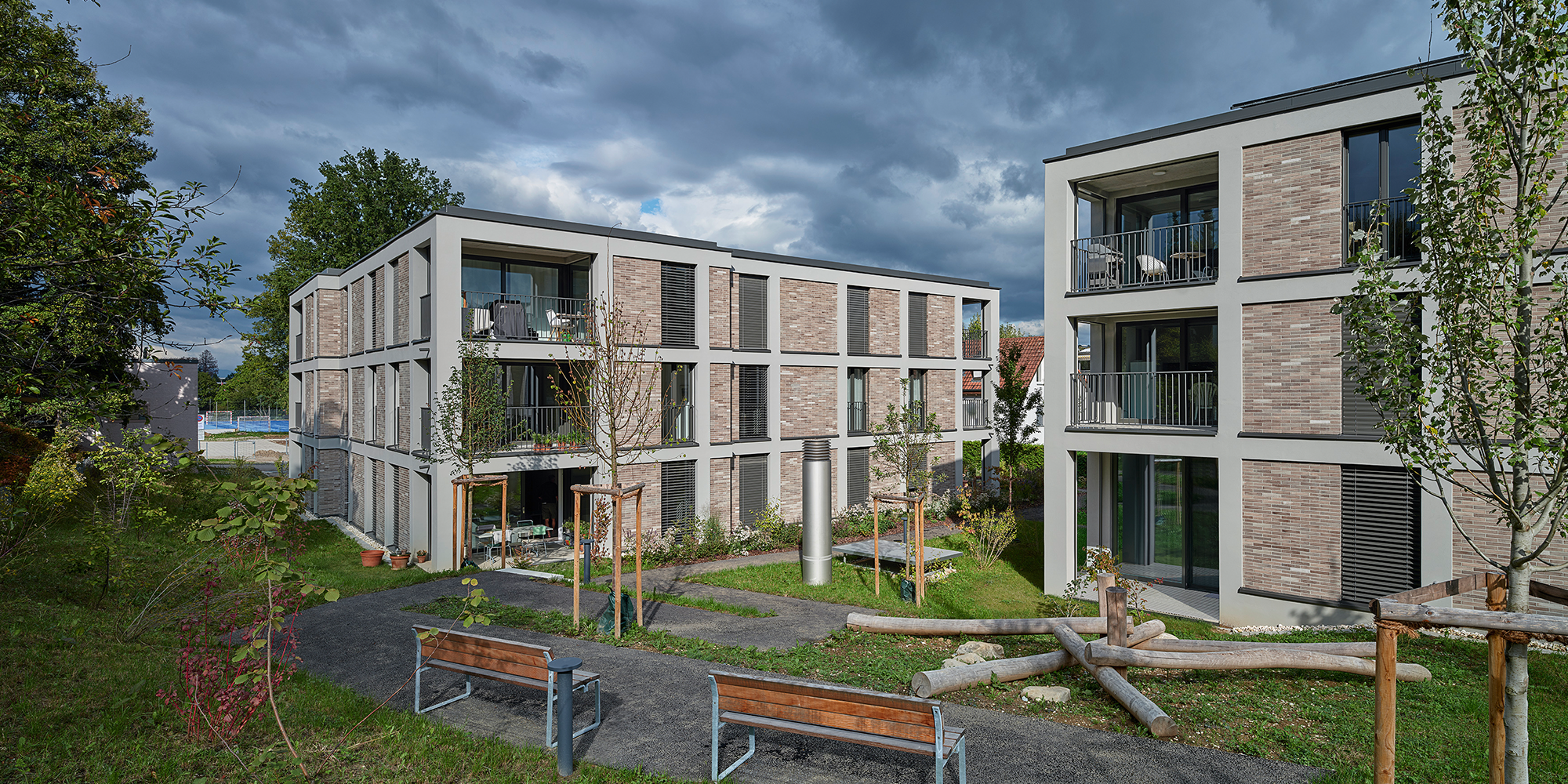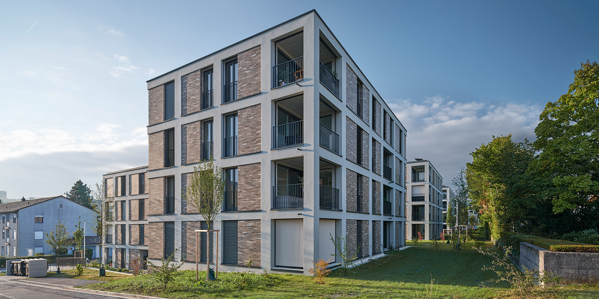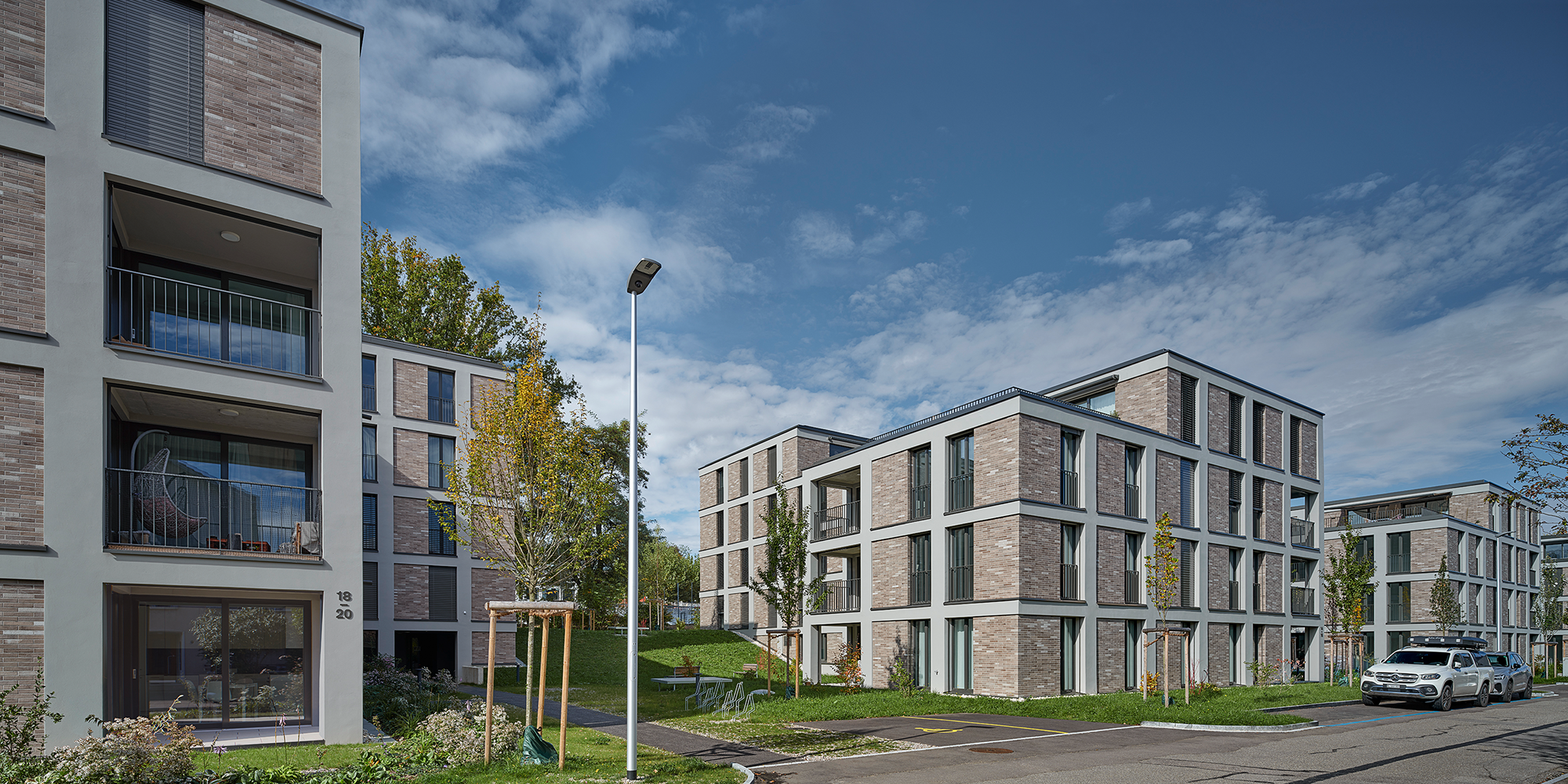 Die Zwischenräume werden als Höfe mit einer üppigen von verschiedenen Vegetationsstufen geprägten Gartenlandschaft ausformuliert und bilden eine attraktive Adressierung. Diese vegetative Dichte reagiert auf die bauliche Verdichtung und schafft ein angenehmes Mikroklima für die 95 neuen Wohnungen. Geplant ist ein vielfältiges Wohnungsangebot mit 2 1/2 – 5 1/2 Zimmer-Wohnungen, die den Mietern zeitgemässe Wohnräume mit einer hohen Variabilität in der Nutzung und Möblierung bieten. Die Tektonik der Fassaden aus Gesimsen, Lisenen und zurückversetzten Wand- und Fensterfüllungen verleihen den Baukörpern eine Plastizität sowie Eleganzund stärken die volumetrische Gliederung.